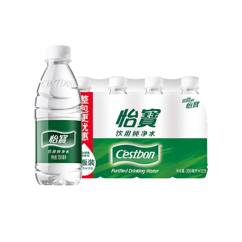 包邮 怡宝 纯净水350ml*12瓶/箱 会议活动饮用水非矿泉水塑膜包装小瓶水 350mL12瓶